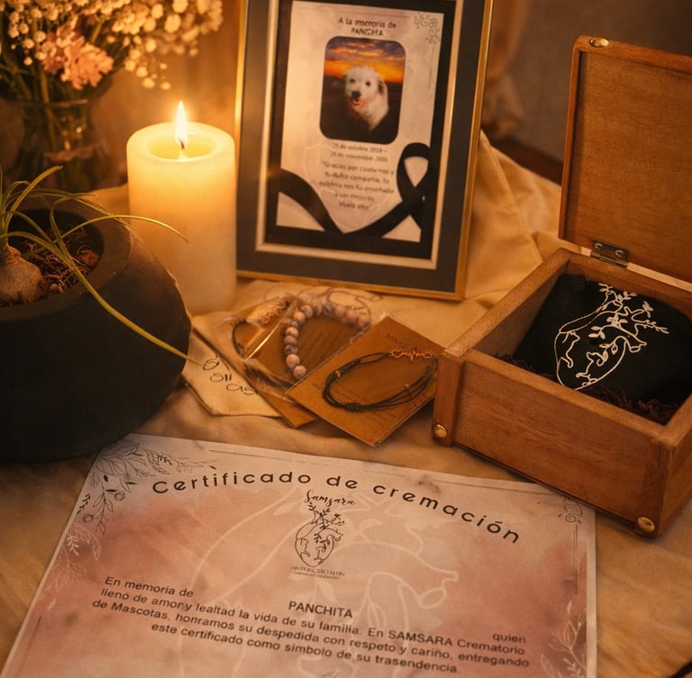 Recolección y cremación de mascotas con entrega de urna o maceta para cenizas.